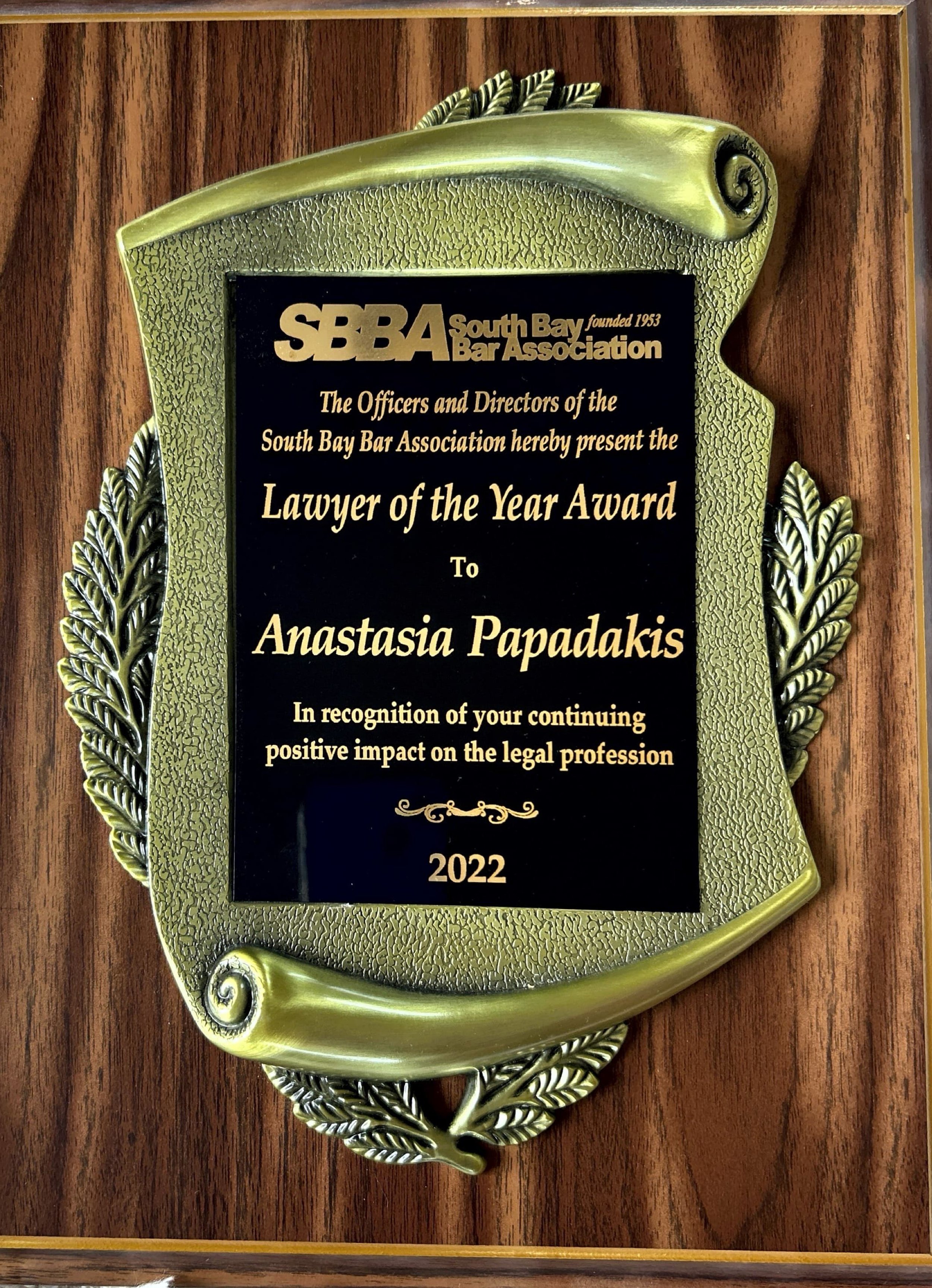 SBBA Lawyer of the Year recipient with City Attorney Michael Webb for recognition of innovation in establishing the Redondo Beach Housing Initiative Court.